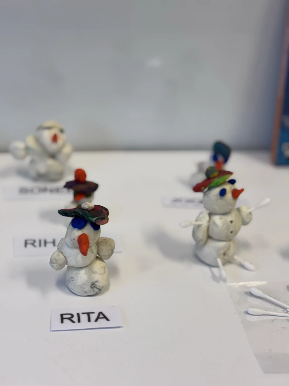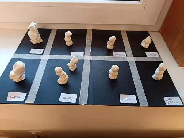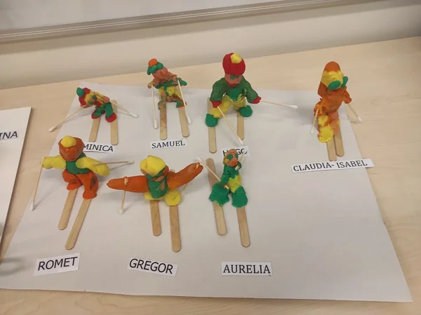 Näiteks Kaisupõnnide rühmal (õp. Heilika Rosin) valmisid voolimistööna suusatajad ja kleepetööna lumememmed.