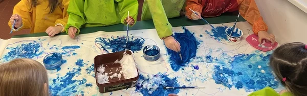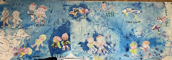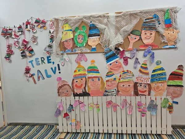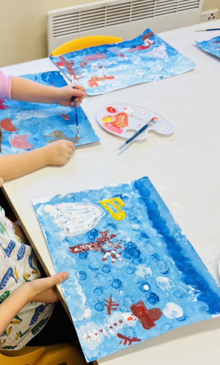 Mõnus talveilm ja talvised tegevused peegelduvad jaanuarikuus lasteaialaste kunstitöödes.
