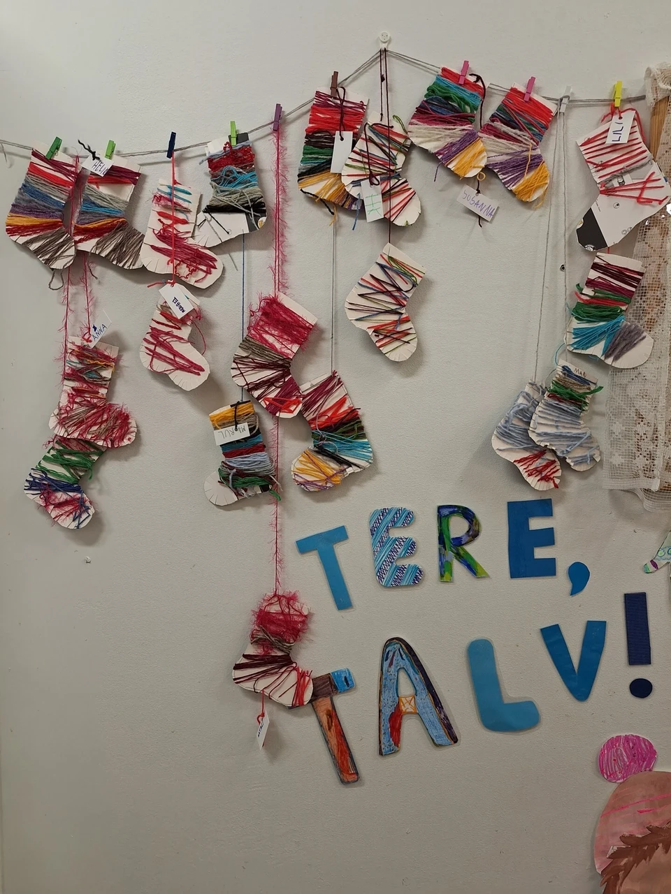 Merepõnnide (õp. Maris Kirotar) rühmal valmisid kunstitööna lõngast ja paberist soojad sokid.