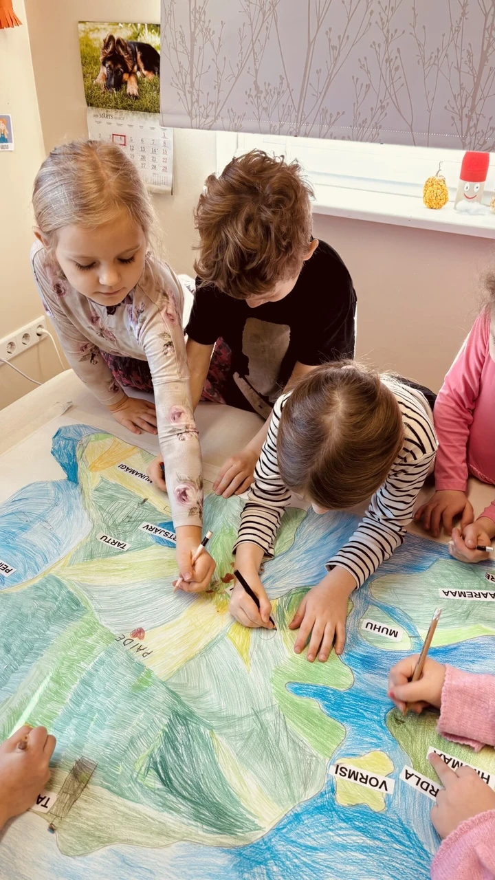 rühmas, (5-7 a.) õpetaja Marleen Ojaveer juhendamisel lõpetasid lapsed kodumaaga seotud teemasid.  Õpetaja juhendamisel valmis lastel ühistööna suur Eestimaa kaart.